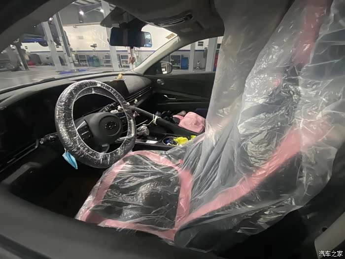 给座椅方向盘都套上了保护套,避免弄脏