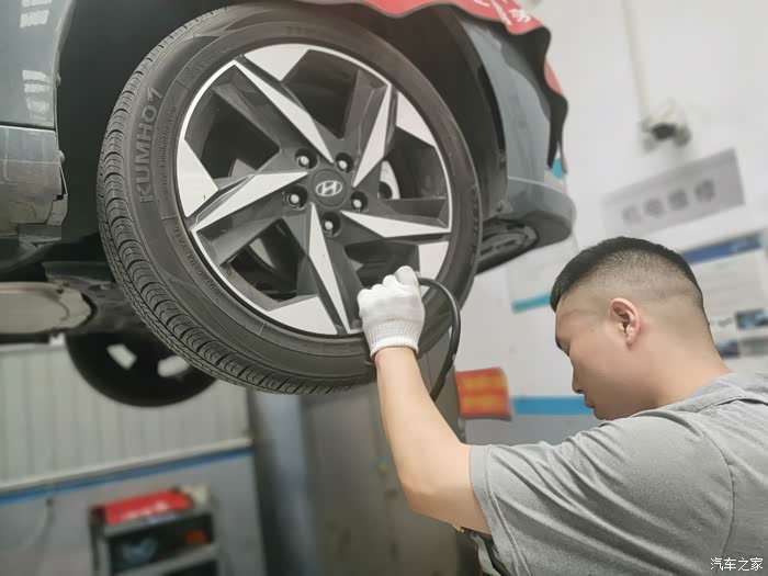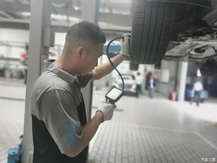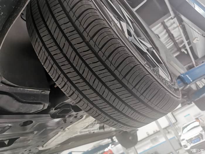 换完机滤趁着车子还在高处,检查一下胎压