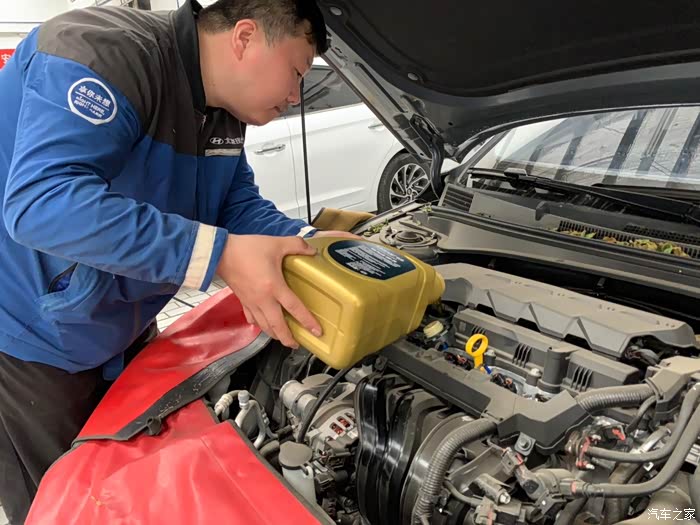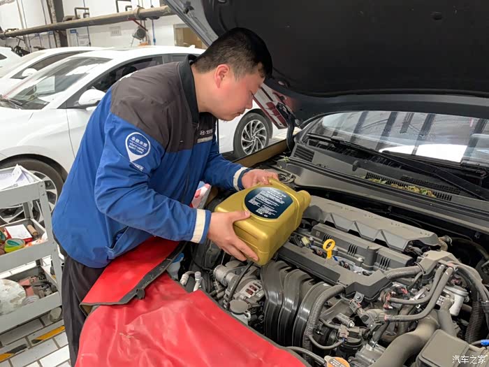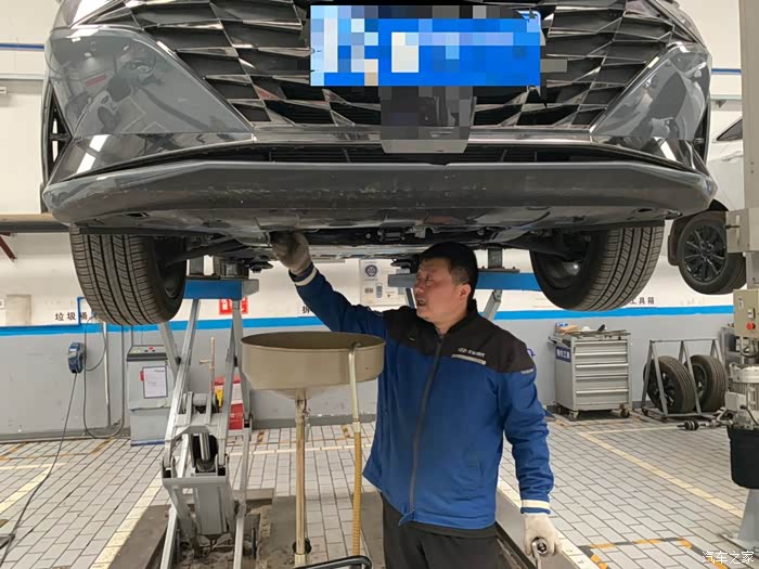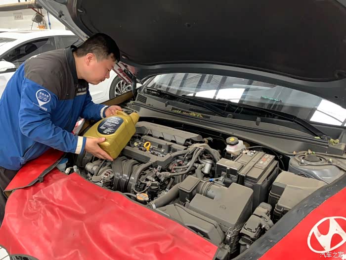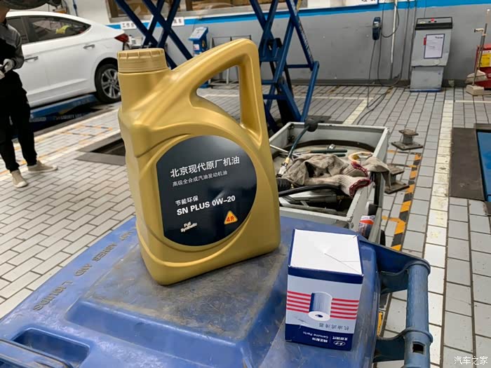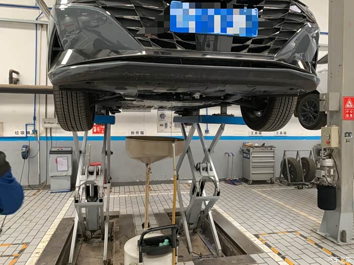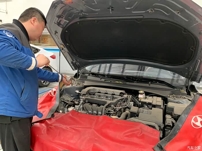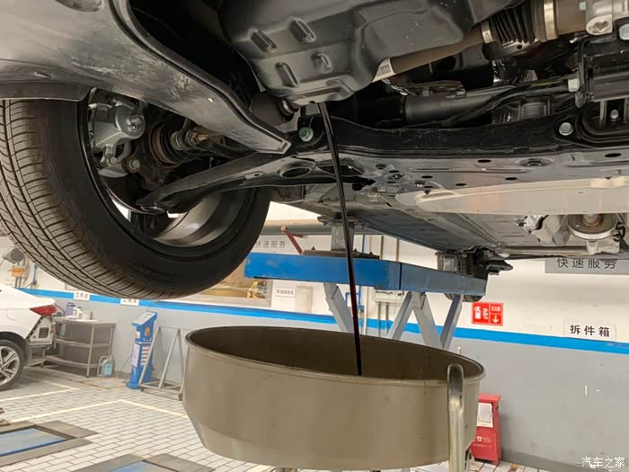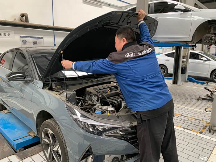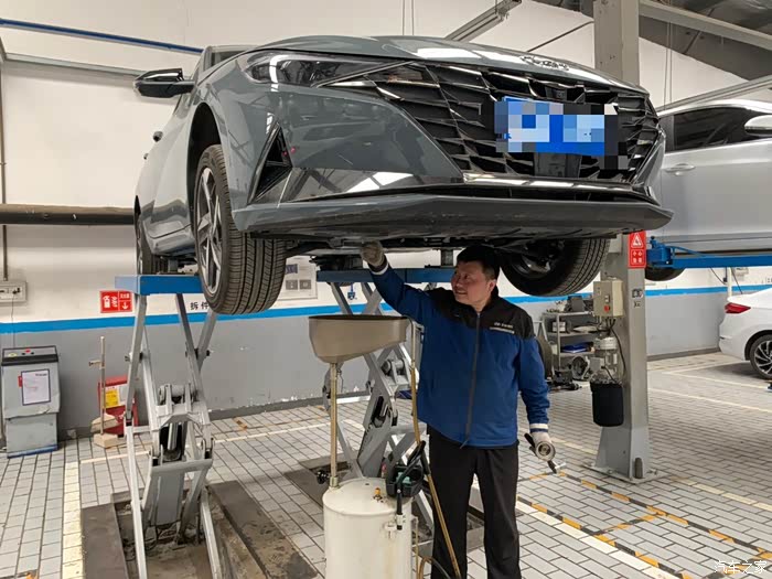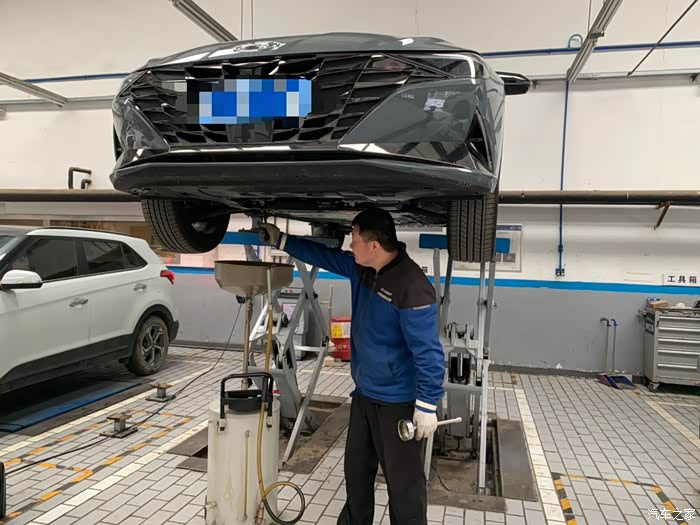 机油注入完毕后,再次将伊兰特升起,反复检查有无漏油情况