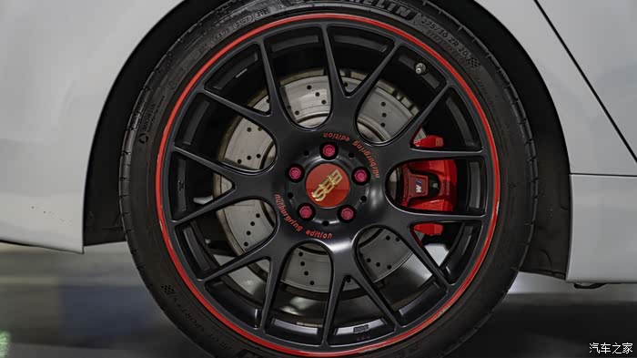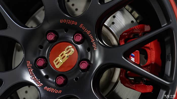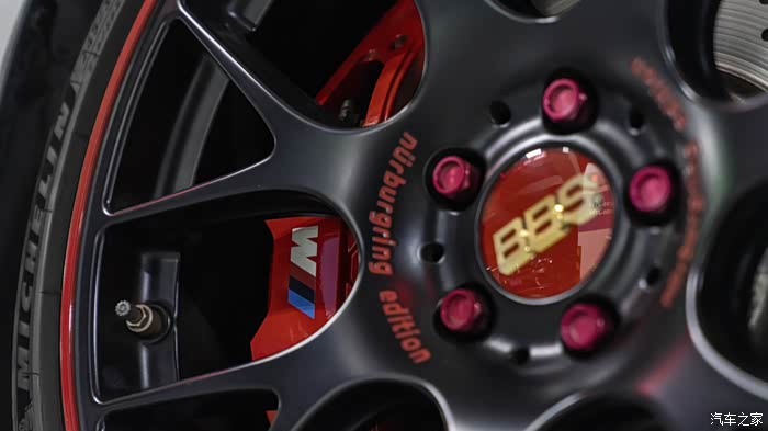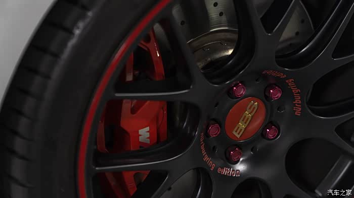 轮毂是德国BBS的CH-R 纽博格林限量版加上Blox的红色点缀,轮毂、刹车、螺丝浑然一体