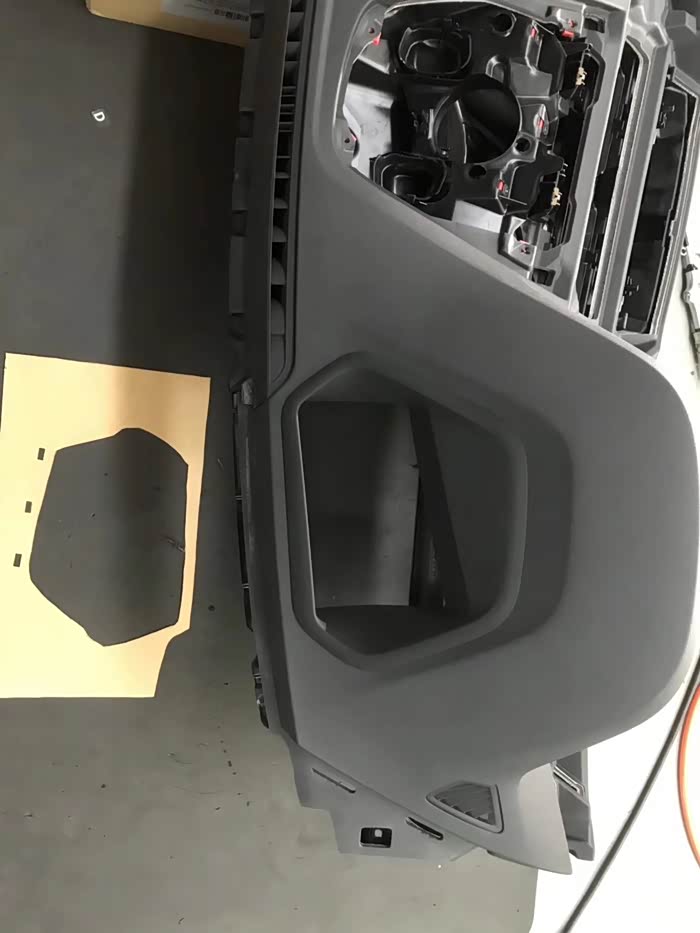 仪表台开好孔了,完美的缝隙、位置,搞着个项目要慎重,毕竟在原车仪表台上动刀,手工不好缝隙会很大