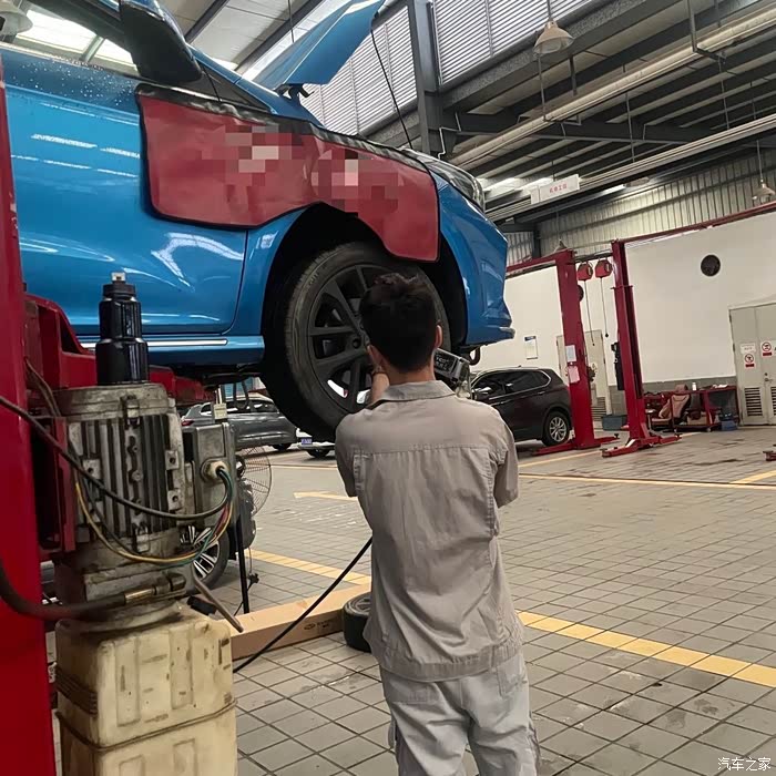 两边轮子都已经被拆了下来……等待师傅更换方向机……