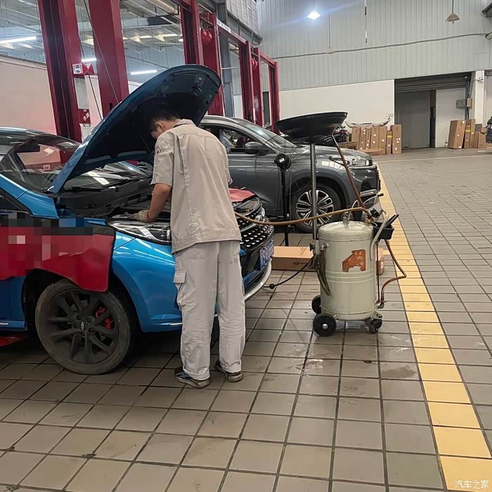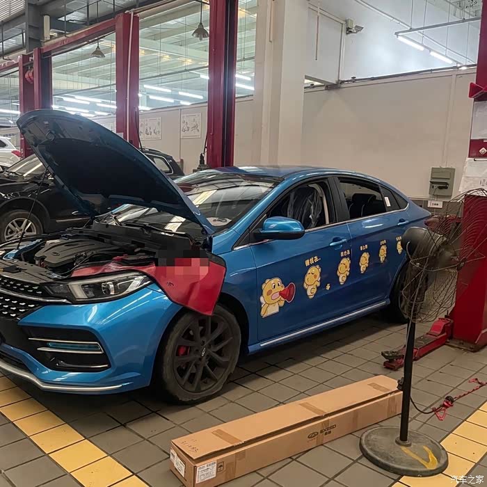师傅已经把机舱打开,不知道要干啥用的,防止脏污弄到车上两边已经铺了保养的垫子……