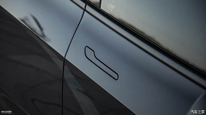 新款的MODEL 3熏黑了镀铬车窗条和门把手,这个点赞