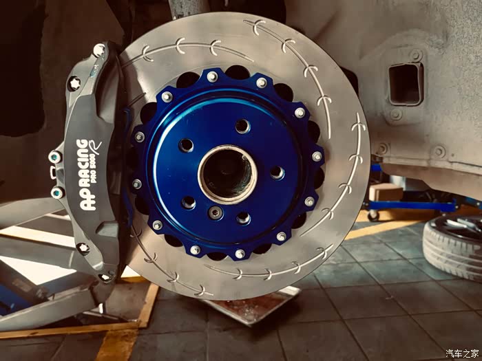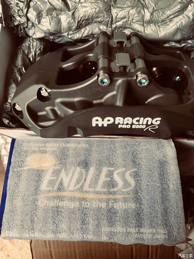 跑了两圈,发现刹不住!!热衰减严重!跑完赛道后开始改装刹车卡钳。我改车以低调为主,不太喜欢红黄蓝绿那些卡钳,最后选择了ap9660配endlessmx72片