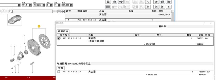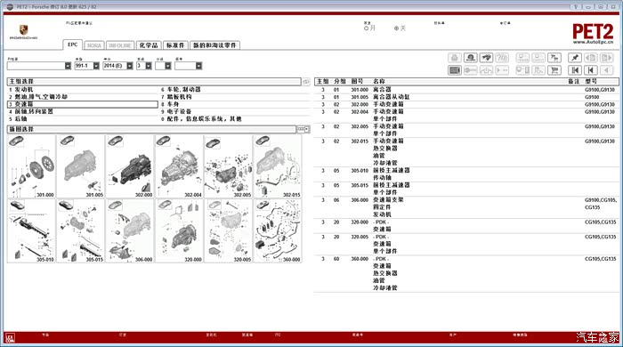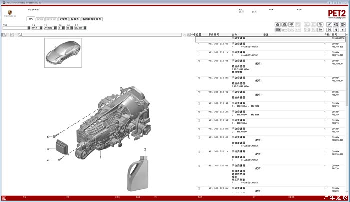 通过百度了解到有个神器叫PET,应该也是4s用的玩意,能直接查零件号和线上购买零件,搞了个破解版,不是最新的,但是对于991肯定是够了,毕竟很多年的老车了,这里要感谢AutoEpc,不单提供免费软件给大家,还热心帮我解决安装问题。一阵骚操作,运行成功。