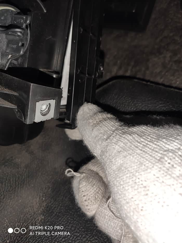 拽住空调滤芯拆装条向下用力抽出空调滤芯