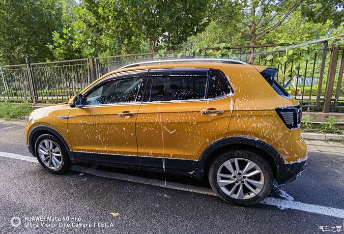 天刚刚下过雨,还是可以看到车身污渍明显,由于经常跑高速,车牌中间还能看到虫子的残骸。