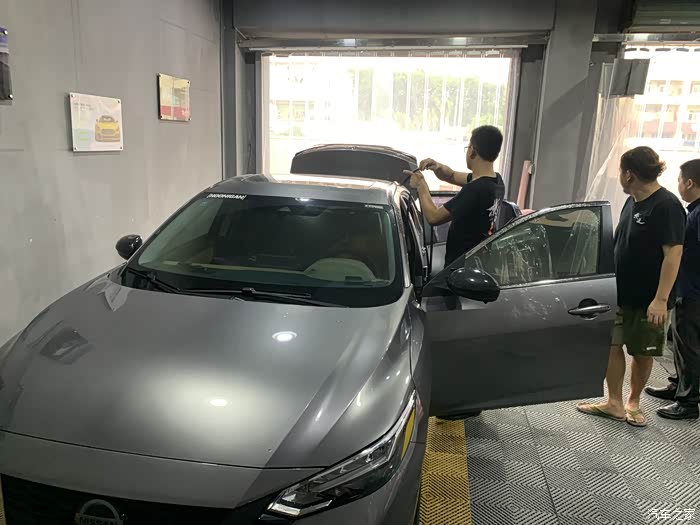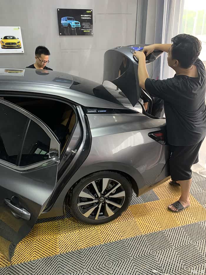 找了个周末,约好了施工时间,开去店里。除了车身改色膜,我还买了车顶黑膜。