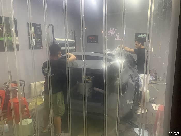 这家贴膜店也是我在网上找的,离我家挺近,生意不错,好多车在贴,我只能先在门口排队了。