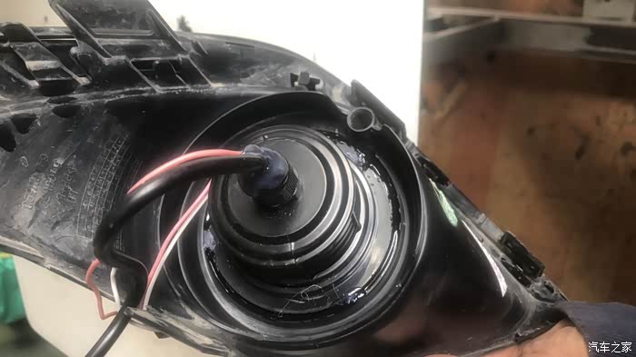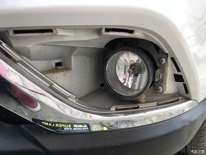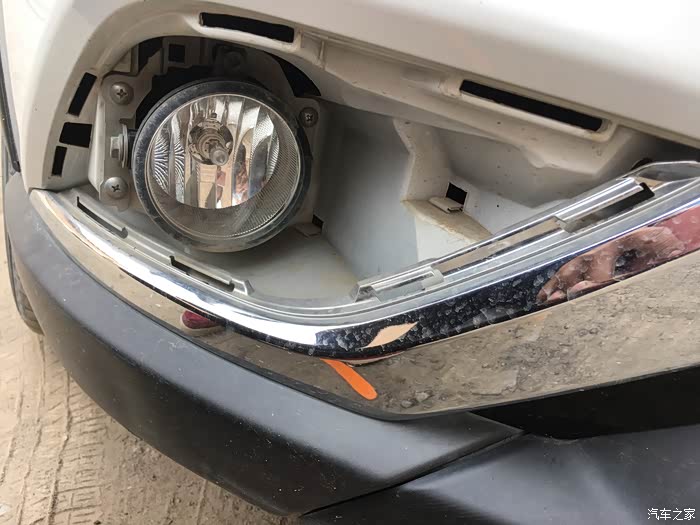 雾灯罩的卸载还是很简单的。最难、最复杂的就是各种线的连接。打开灯罩,欧蓝德原车卤素雾灯露出真容。