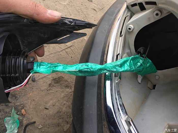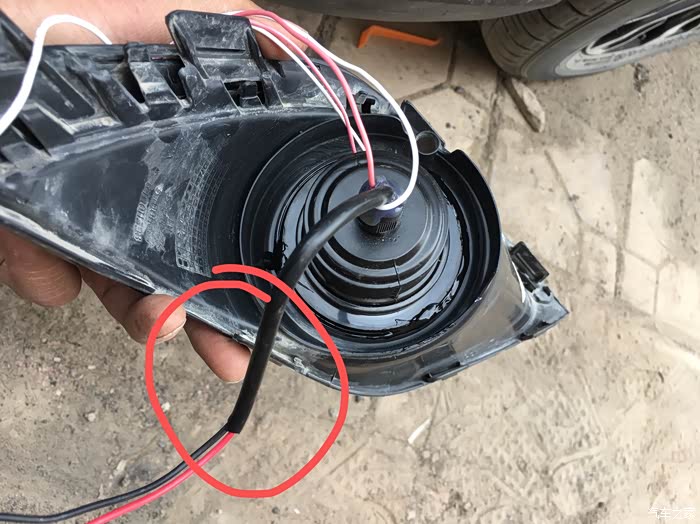 最麻烦的就是各种线的安装。如图所未,红色圆圈标注的线是雾灯线。