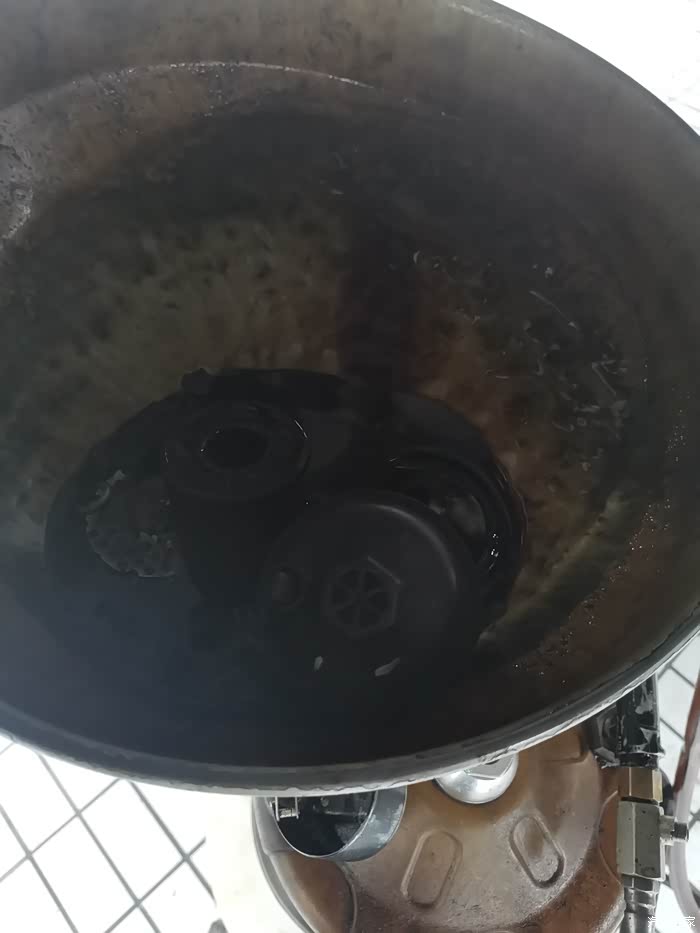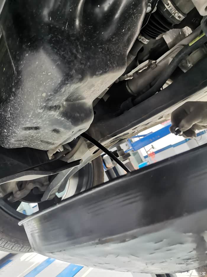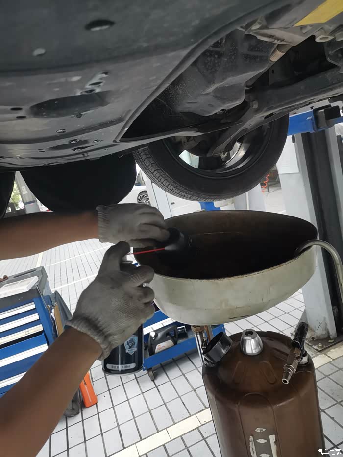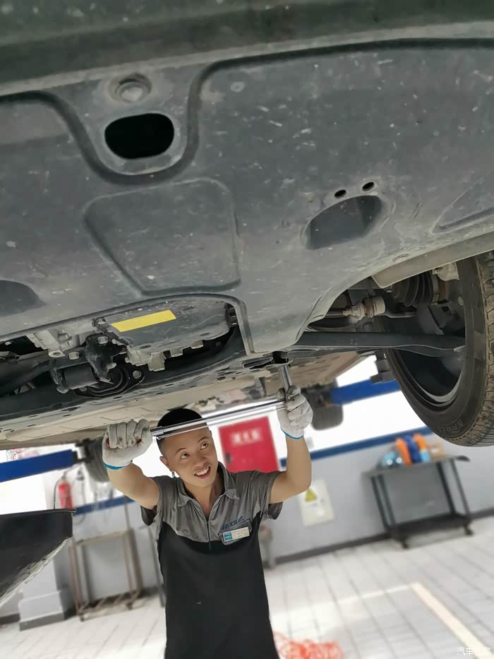 趁空隙给四个轮胎补气,各个零部件拧紧,取下机油格,对机油格进行冲洗,换滤芯,轮胎小石子去掉,再加注原厂全合成机油,用机油尺测油量,等等。不愧是终身免费基础保养,师傅动作非常连贯,很节省时间,全部做完都不到一小时,棒