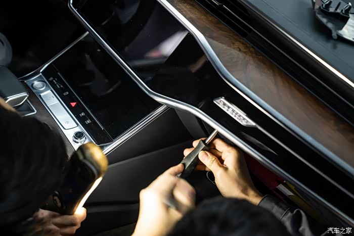 从近期的奥迪车型改装项目上来看,副驾娱乐系统已经逐渐被大家所重视,由A4,S4,Q7再到现在的A6 allroad,很多车主朋友会选择在新车落地后到店加装一套副驾驶娱乐系统,原本相对空旷的副驾驶会显得更加饱满富有科技感,且不说坐在副驾那位的感受,光从后排看也非常符合对称美学。