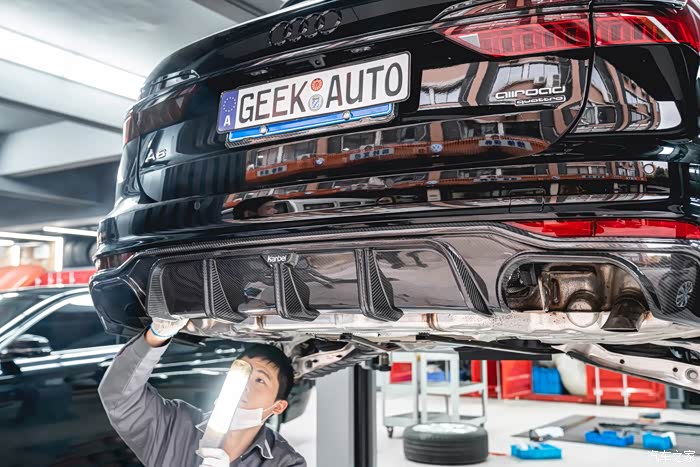 考虑到21款奥迪A6 allroad相对圆润的车身,kabel本次在原有的基础上增加了刀锋元素,使得整车棱角分明