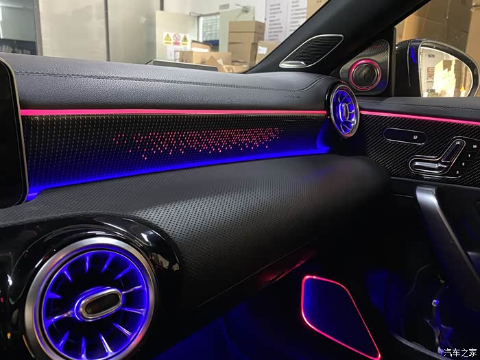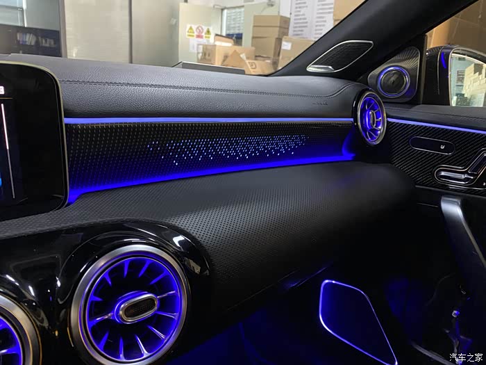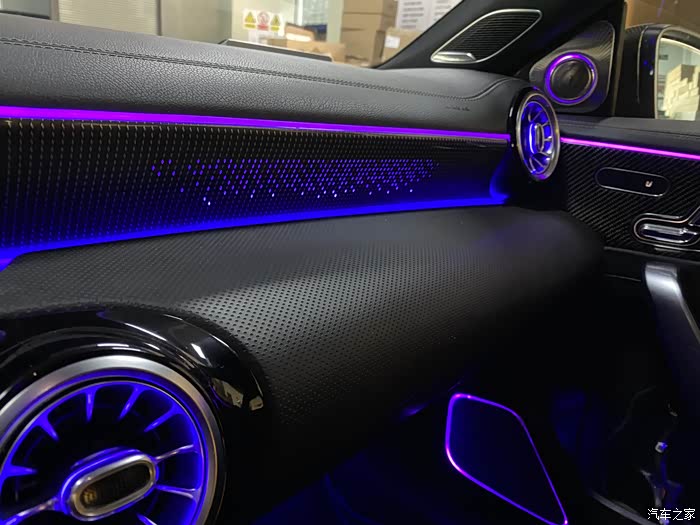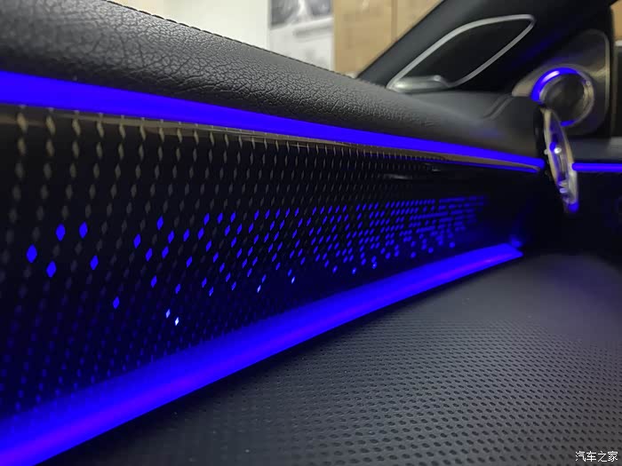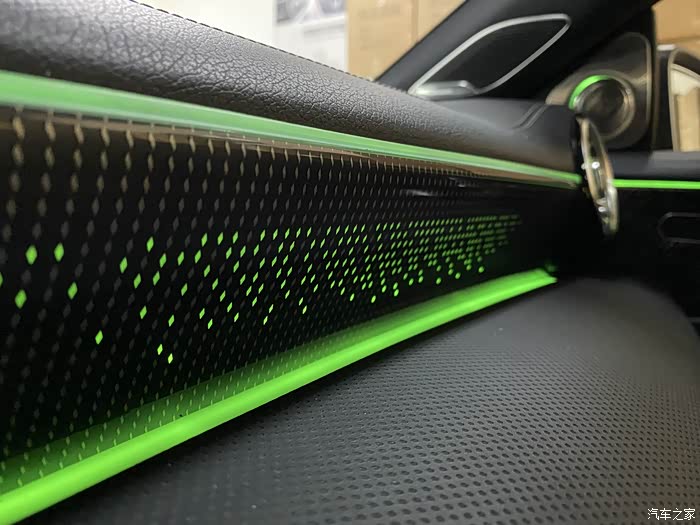 我当时在刷AMG仪表的时候,改装店就给我提过这个副驾驶发光面板项目,他们叫作星光面板,因为发光点像一颗颗星星所以取得名字。实际效果和名字真的很搭。本来我不是很想弄的,但是看见他们点亮样品的时候,那个效果真的太好看了,就一起弄了。