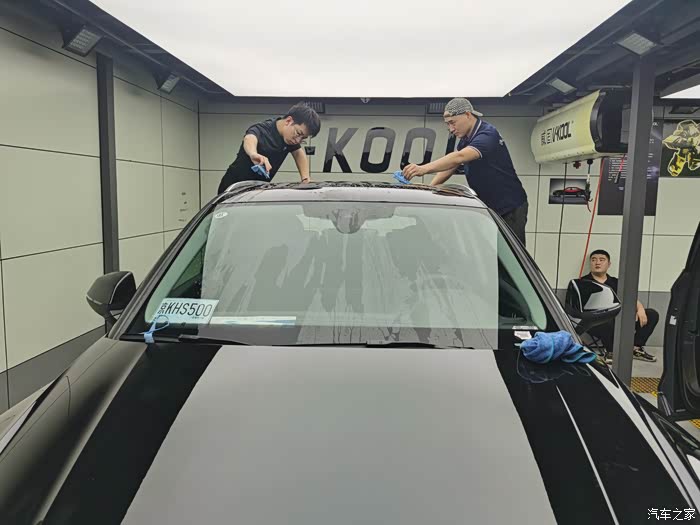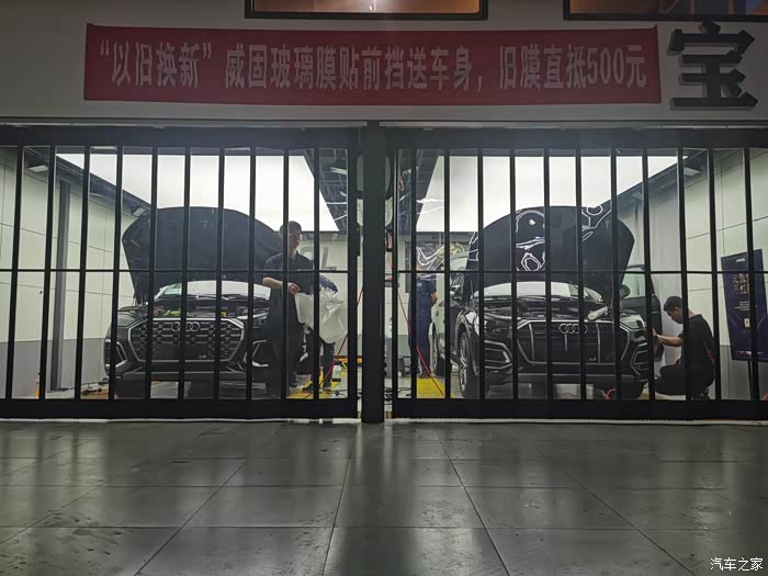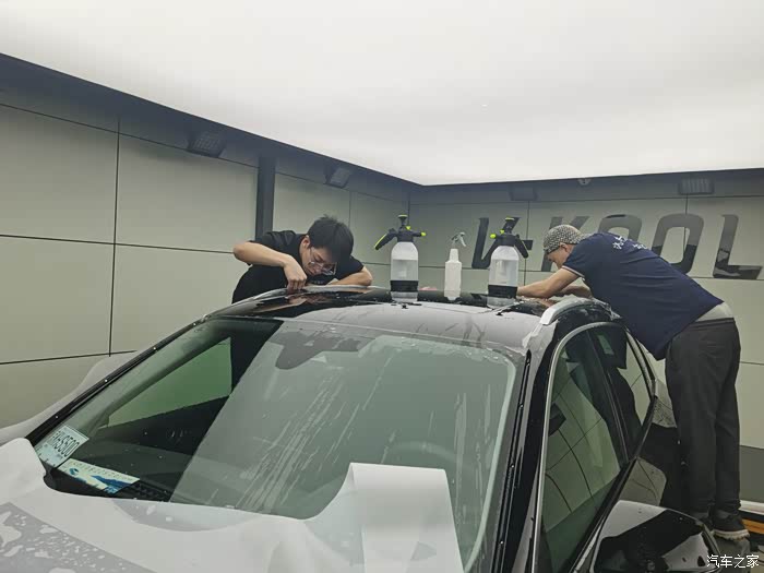 这是进到恒温恒湿的车衣房里,开始拆门把手、车门饰条,方便贴车衣