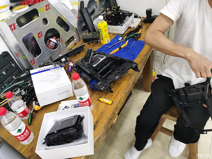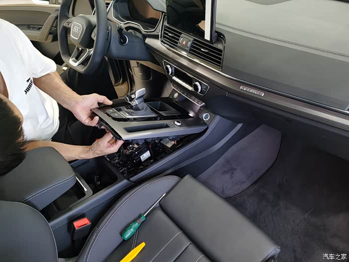 首先,安这个盖子,需要把中控地台的所有装饰件的螺丝全部拧下来,然后用翘板把装饰件撬起来