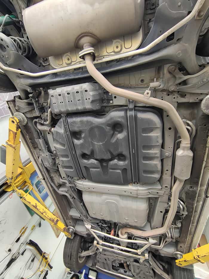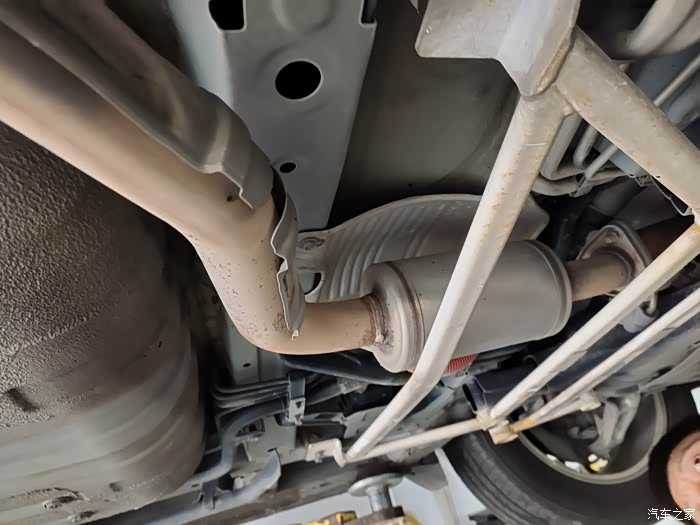 照片都是用不给力的手机随手拍的,来一张单独的图。生锈很明显。原本想保留安装顶部的隔热板,结果因为顶部氧传感器孔位不一致导致没法用,侧面的隔热板也没做。
