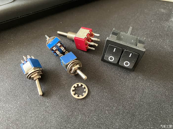 至少需要2个开关,金属扭子开关最为带感,是不是要在塑料内饰板上打个孔安装,还是另外做个附加底座我还没想好。船型开关是顺带买的,反正都很便宜就都买了几个备用。