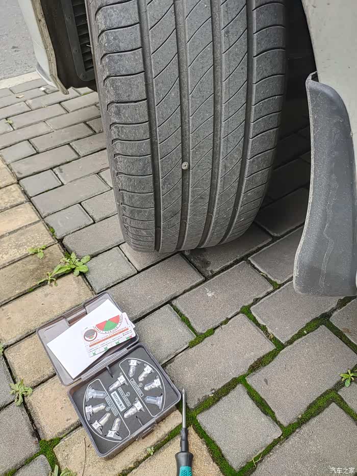 最近点儿背,前后轮先后扎了好几个洞,嫌麻烦没去扒胎补,而是选择了自己用补胎胶钉解决问题。主要原因还是我不喜欢现有的这套胎,前胎是米胖Primacy4 235 55R17,后面是同规格马牌UC6。