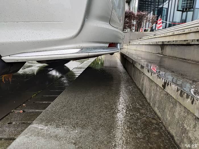 没改过车身高度的情况下已经这么低了,倒车时不小心把园区的二级台阶干去小块。还好只是行李箱底部的拖车钩啃了台阶,如果降低了车身……