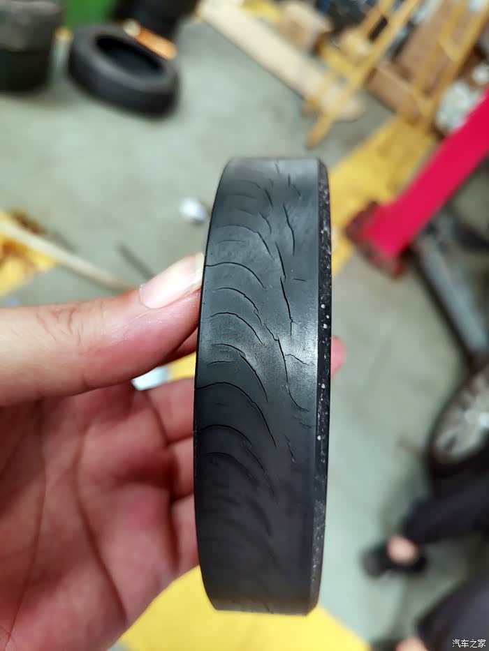 这个横向开裂是包覆橡胶的连接处,快要完全断了。