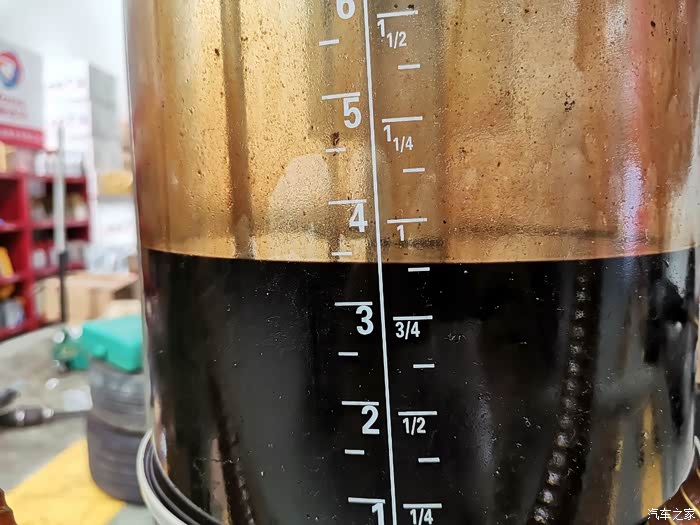 旧机油抽出来3.4升左右。刚洗过积碳,极黑。