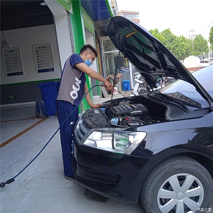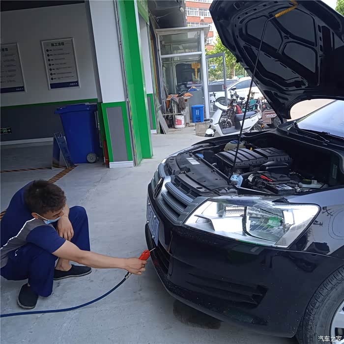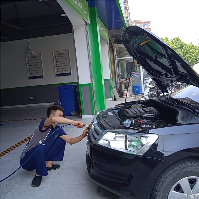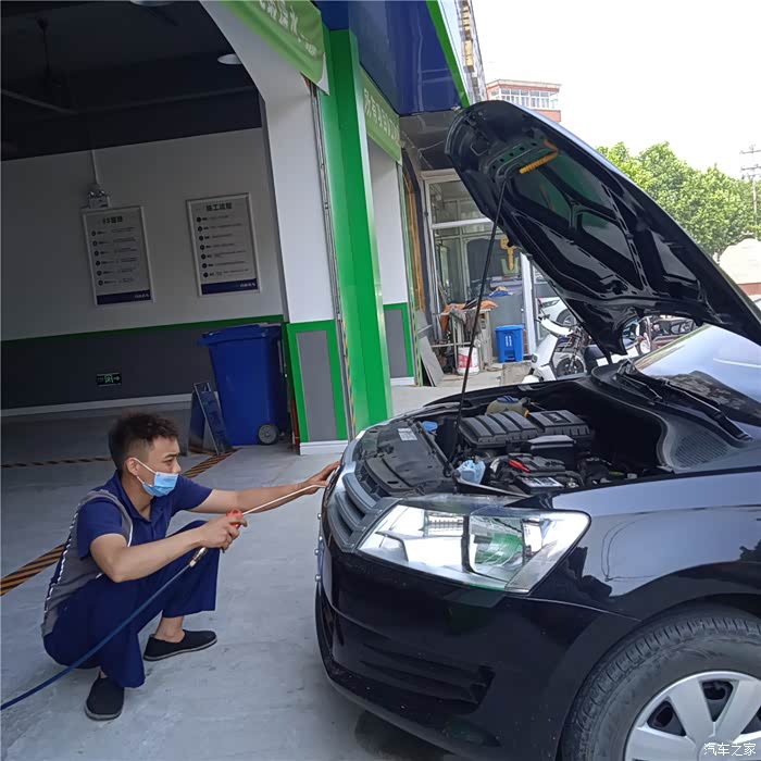 大概冲洗了有十几分钟,冲洗的差不多了,师傅说顺便把发动机舱上面给冲洗一遍,就这样开着车出去路试一下,感觉出风口温度好像是凉爽了不少。