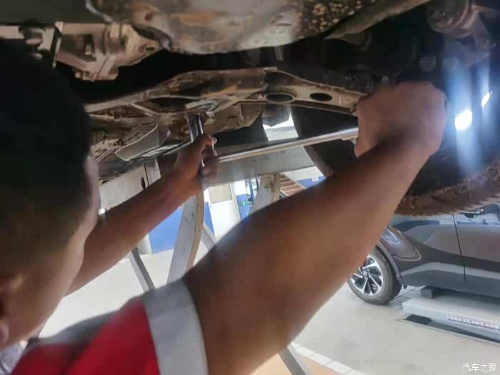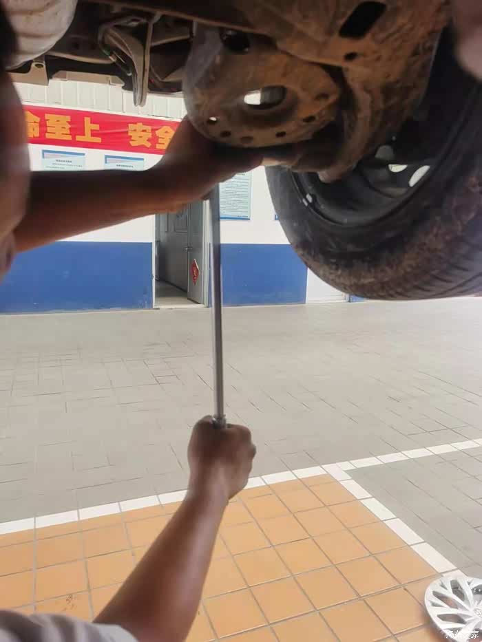 空调滤芯和空气滤芯还不脏,就没更换。接着师傅把车升起,检查了一下底盘的剐蹭情况,我平时开车还比较小心的,高处不会乱开,所以也是OK的。然后轮胎上的一些外出粘上的小石子帮我清理了一下,大功告成。