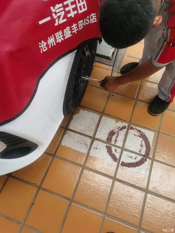 先在APP上提前预约好,丰田很方便的一款车主软件。然后隔天到了4S店,服务顾问指示我把车停到候车区,叫我把车上的贵重物品拿好,对车进行了简单的检查,便开到车间去了。因为是检查,要做的项目还比较简单,不需要更换机油。但是该做的各项功能安全检测一样不落。只见我的小威驰停在了工位上,车间师傅把引擎盖打开,在机舱上铺上了一块防护布,便开始检查胎压。师傅胎压还比较正常,两边平衡,不需要加气。然后是机油的尺度刻线测量,防冻液玻璃水等,玻璃水有点不够,加了一些,别的都OK。