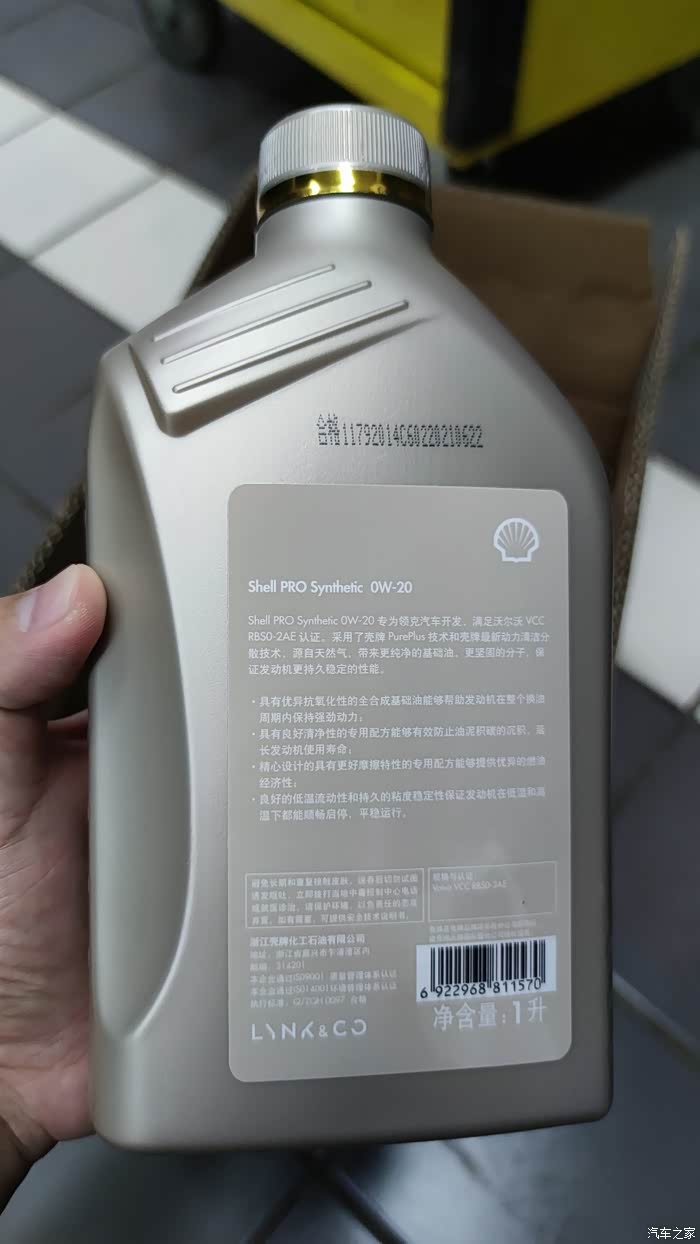 这是要给我车换的机油,领克定制款的0W-20机油,一瓶一升。