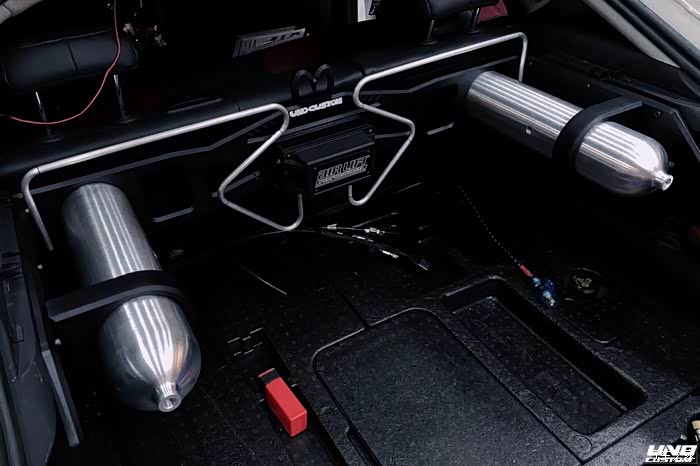 为了给尾箱腾出一些水平的位置放置设备,我把造型设计为悬浮式,同时气罐也从一个5加仑的大气罐换成两个迷你罐,放置在尾箱两侧,并且尽量让管道的设计紧凑一些。