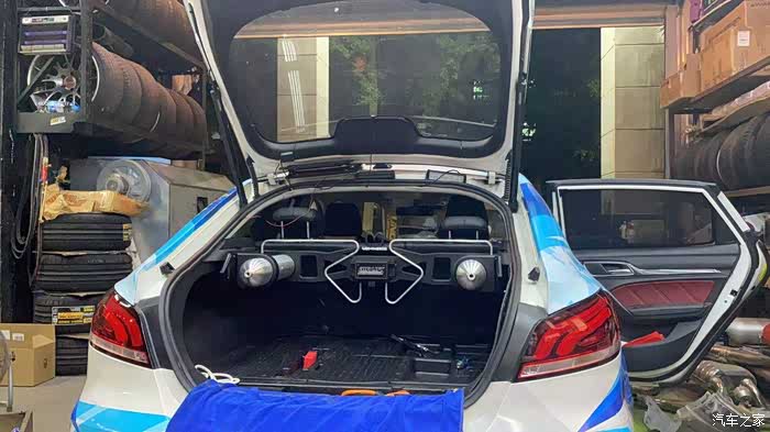 因为车型的原因,尾箱空间非常有限,在初次安装设备的时候,考虑了很久,也仅仅给气泵找到了安装的位置,诸如气罐、电脑等设备,都只能铺在尾箱上。