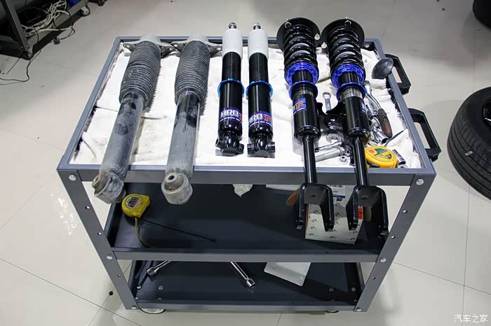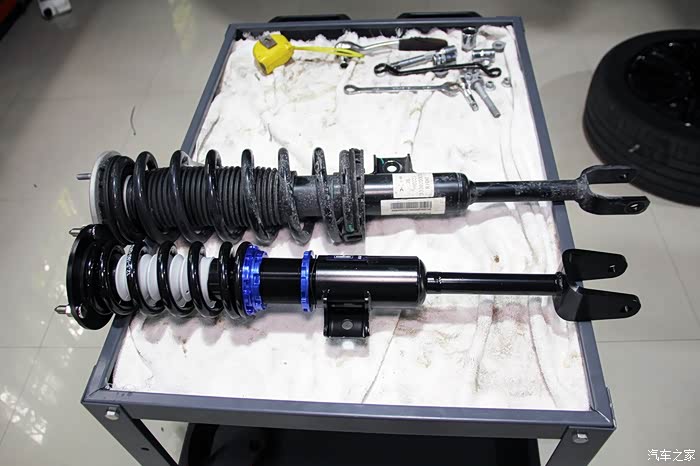 今天上车最终的成品套件,避震器的效果还是非常让人满意的。用一个字形容,那就是“韧”,不跳不颠。