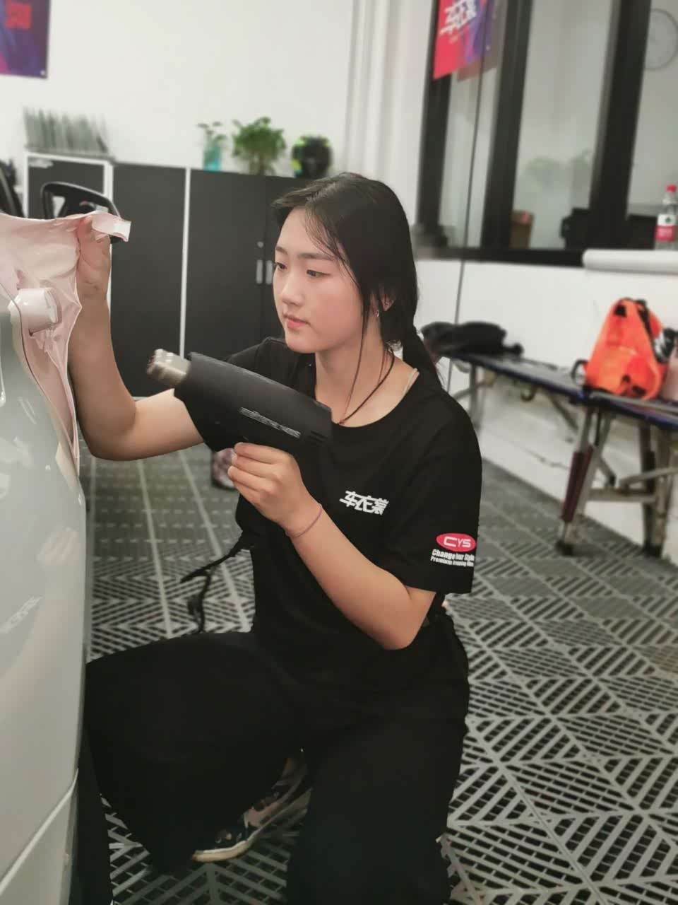接下来店里安排技师撕膜,闺蜜来之前选中的Tiffany蓝,现场也看看颜色效果,贴膜的小妹妹看起来年纪很小,原来才18岁,呜呜~~羡慕,老阿姨表示很羡慕~~多来几张小妹妹的工作图