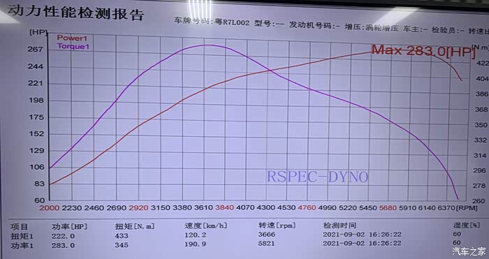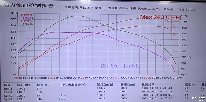 9月的珠海30度室外温度的情形下拉出283匹轮上马力