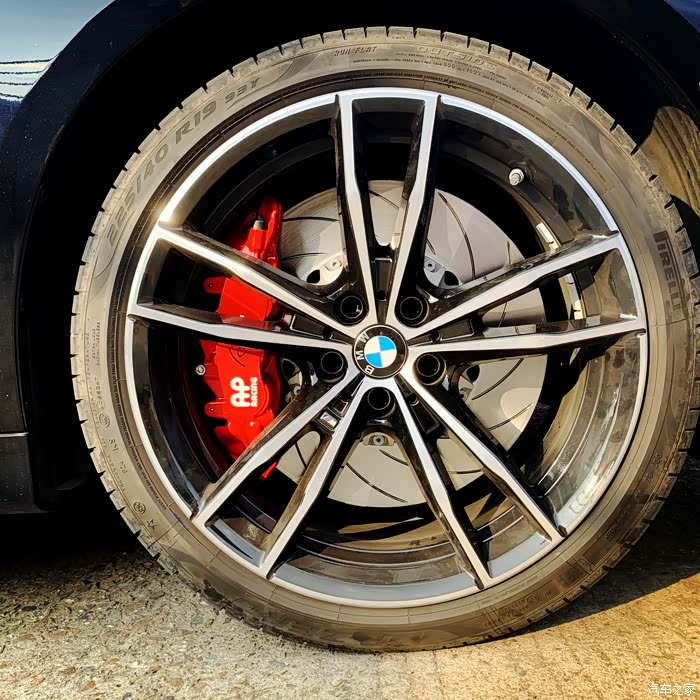 先来一张镇楼图!真正宝马新3系前6后4的正确打开方式:前轮:布雷博GTS一套(380龙纹盆)3.2W。米其林CUP2.0新款轮胎1W。20寸BBSREV7十周年限量版5.1WBBS蓝盖2500。