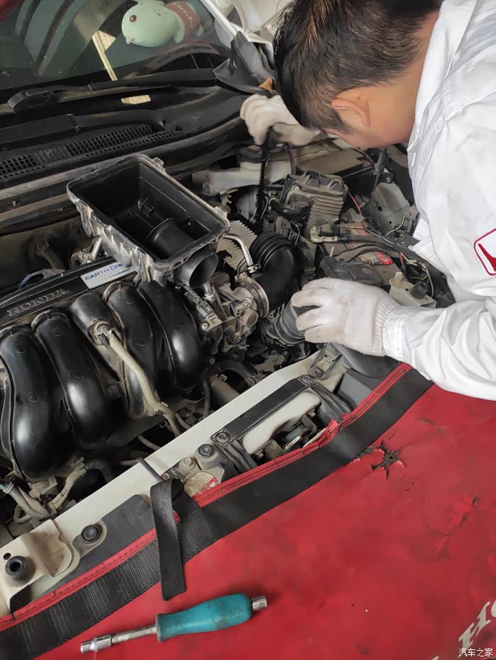 技师师傅准备拆卸挡住变速箱的部件