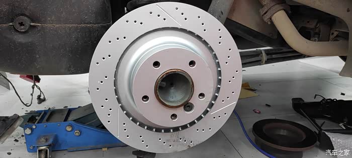 原车盘子小很多,而且没有打孔散热效果不是太好,原车四活塞的