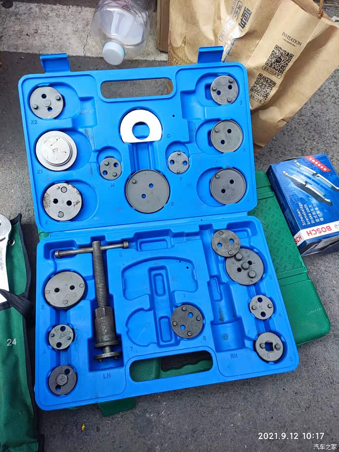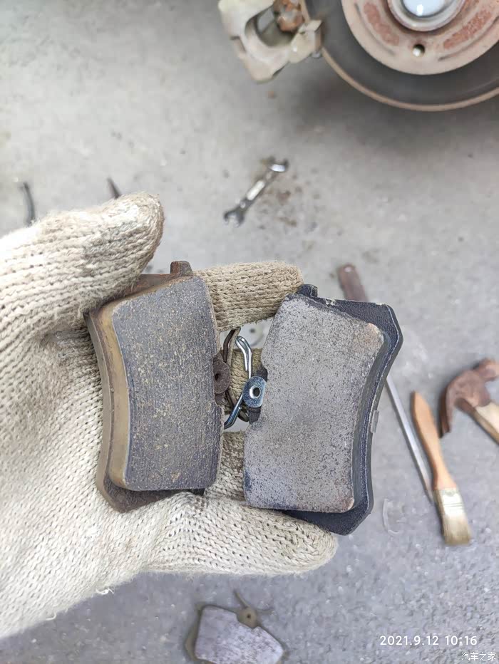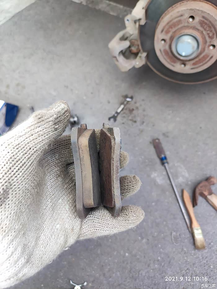 这个车已经跑了六年75000公里了,大概率是市区平缓公路,高速一年也会跑一两千公里。由于几乎都是自己动手保养,所以车子的状态还算了解。后轮的刹车片磨偏是通病,所以一直重点关注。这次保养过程中,观察到已经到使用寿命了,必须更换。刹车片磨的单薄以后,会有一点点响。因为平时观察的到剩余量,所以一直拖到现在。换刹车片一共六个螺丝,其中四个还是轮胎的。想想自己动手能力还行,工具也齐。开干!
