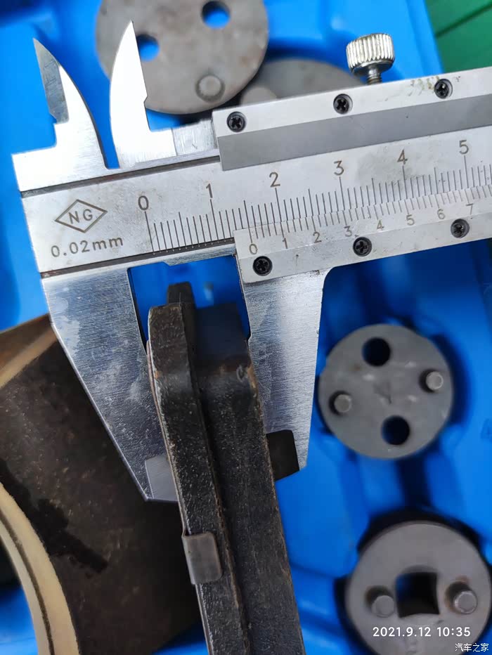这一步是测量两片刹车片加上刹车盘的宽度,记住37这个数值。后面用的上。