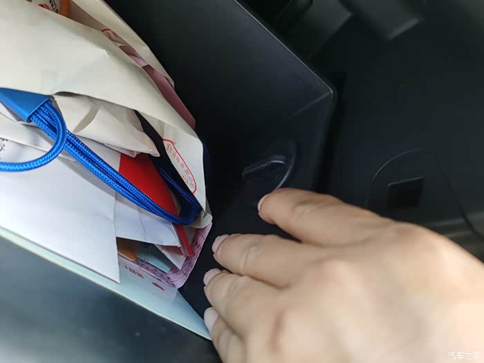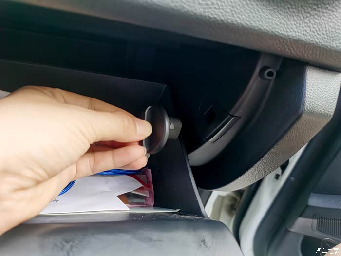 先把副手箱提至该位置,然后再放入卡扣
