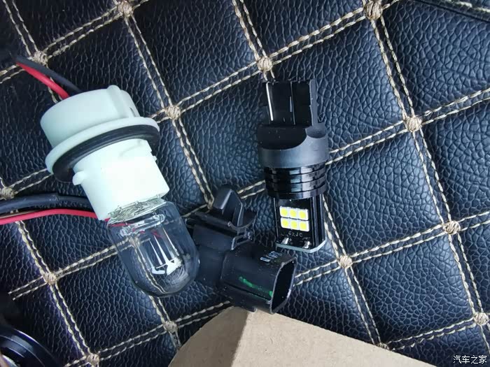 左边就是原车倒车灯泡,右边是准备更换的LED倒车灯。