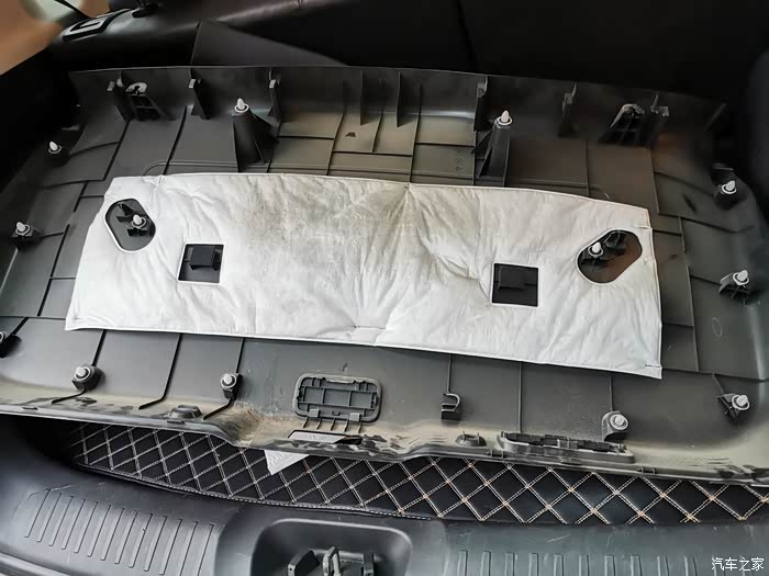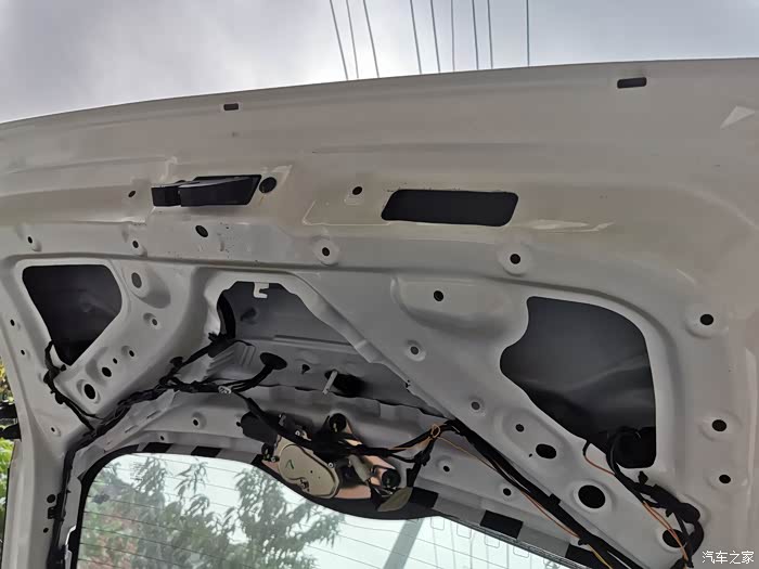 黑色盖板全部拆完,露出了尾门的钢架结构件。