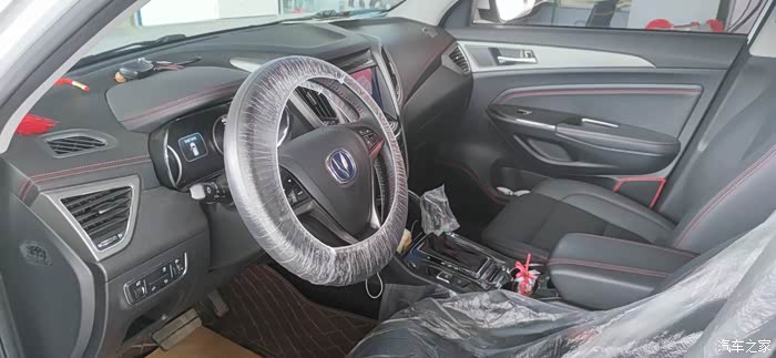 外观检查完了,就可以开始检查车辆内部了,检查完毕之后,工作人员细心贴心的把方向盘、座椅、脚垫套上了一次性塑料保护套,不愧是长安汽车公司的贴心服务。