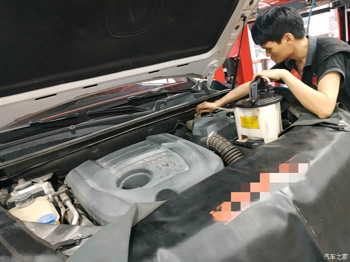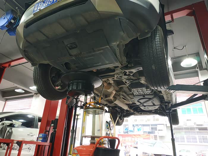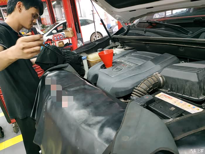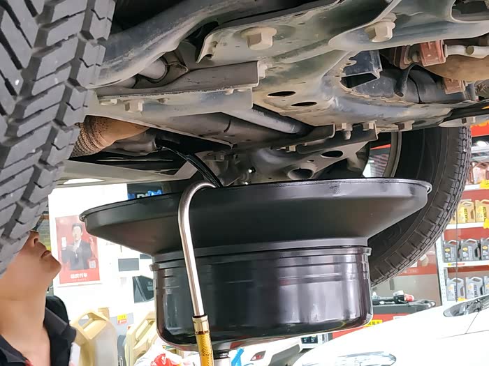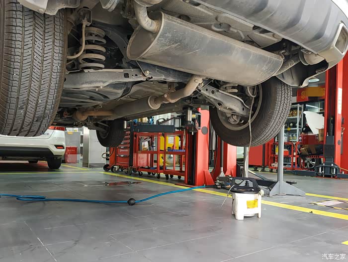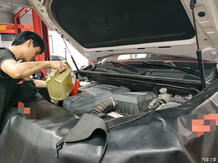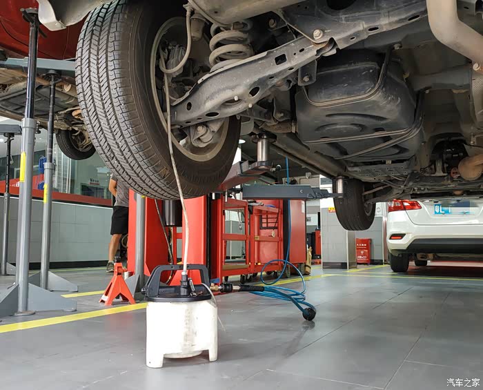 第一步就是要将车内的发动机里已经用了超一万公里的旧机油排掉。