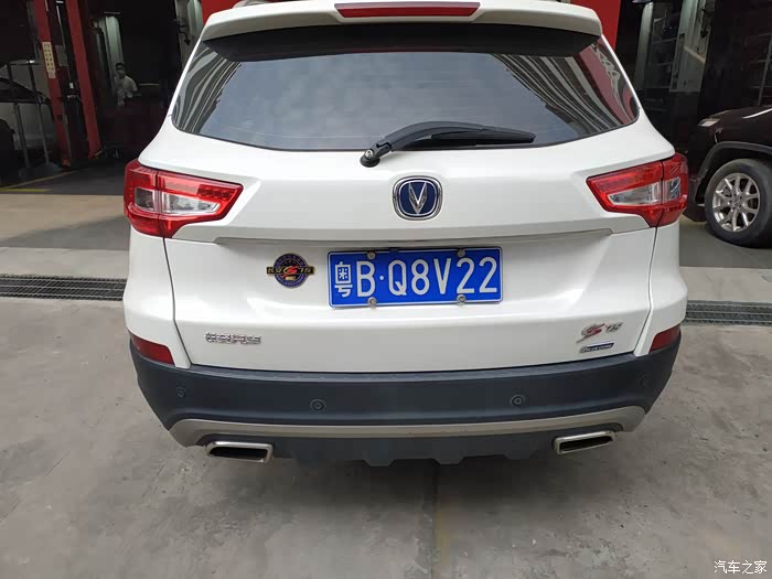 车尾透露出一种稳重大气,对称设计的尾气出口在下方,而长安的V标则在整个车尾正中间。