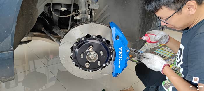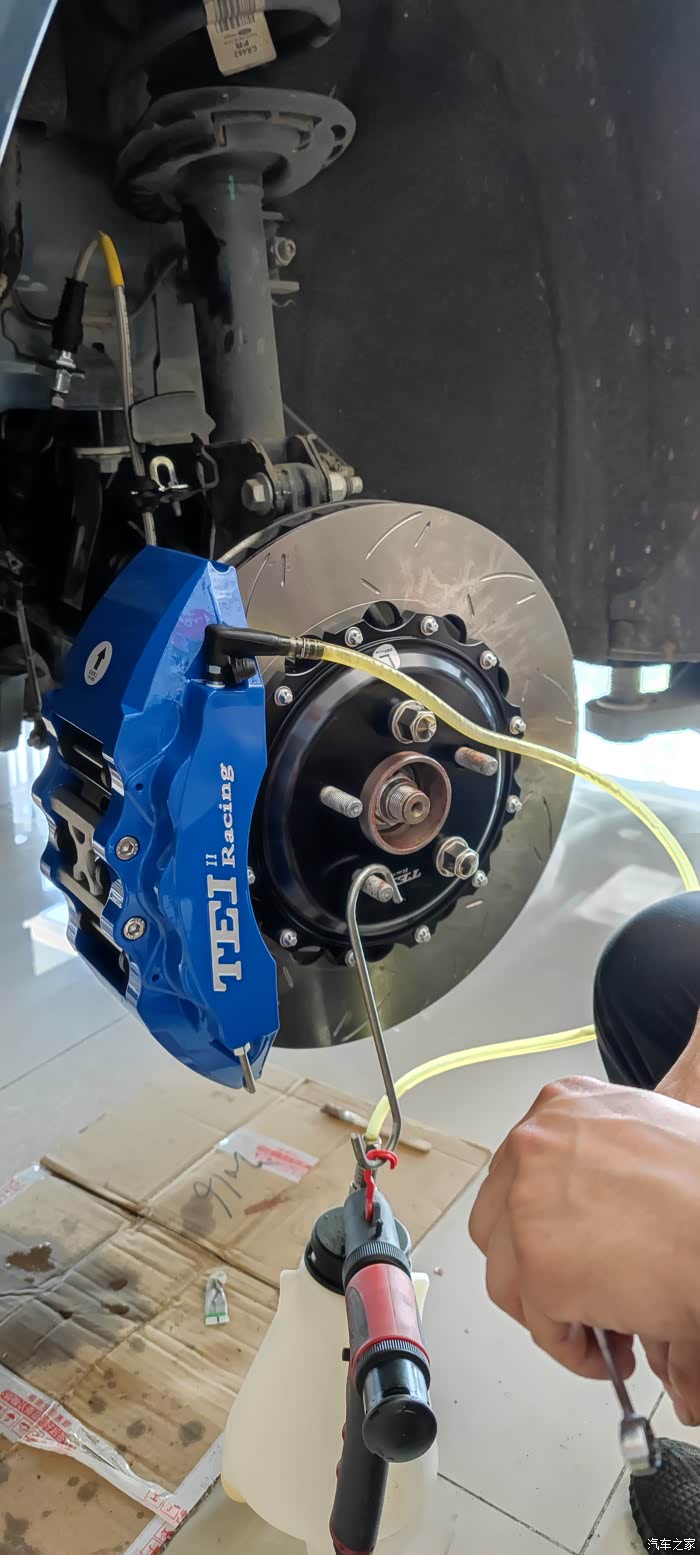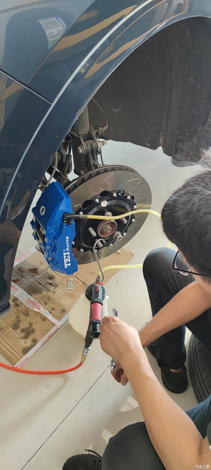 安装完成,开始排空。小哥用真空抽刹车油的,顺序外里外,最好后轮也排空,忘了拍图了,依次右后、左后、右前、左前,一共用了近1.5L刹车油。