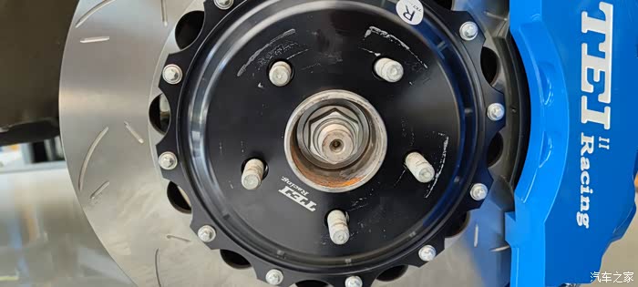 3、吐槽一下TEI的所谓专车合头,PCD数据这一块肯定是没问题的,但是5个螺栓孔间歇太大了,大约50-100丝之间,刹车盘可以晃动1到2度左右,这公差忒大了吧(见后面图片)。虽然轮毂可以压紧,但是少点晃动矿量是基本素质吧,车友若是改装定制合头一定要适当减小公差。